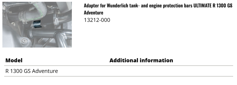 분덜리히 BMW R1300GSA (24-) 얼티메이트 탱크 가드 어댑터 13212-000