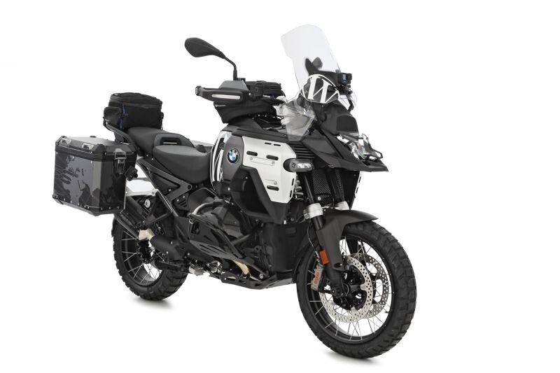 BMW R 1300 GS 어드벤처의 전면 실루엣과 스타일과 기능 모두 완벽하게 통합되도록 설계되었습니다