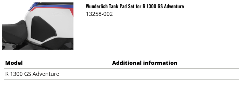 분덜리히 BMW R1300GSA (24-) 전용 탱크 패드 세트 - 블랙 13258-002