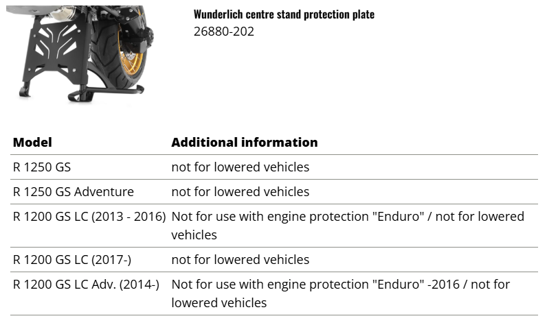 분덜리히 BMW R1200GS, R1200GSA, R1250GS, R1250GSA 전용 센터 스탠드 프로텍터 플레이트 - 블랙 26880-202