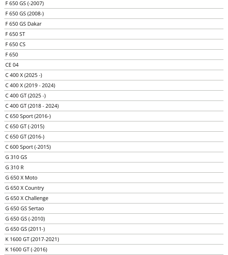 C 400 GT, C 400 X, C 600 스포츠, C 650 GT, C 650 스포츠, CE 04, F 650, F 650, F 650 CS, F 650 GS,