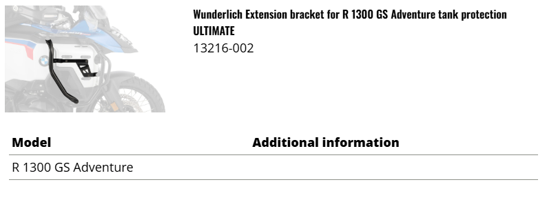 분덜리히 BMW R1300GSA (24-) 얼티메이트 탱크 프로텍션 확장 브라켓 - 블랙_블랙 13216-002