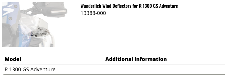 디플렉터는 순정 윈드스크린이나 R 1300 GS 어드벤처를 위해 개발된